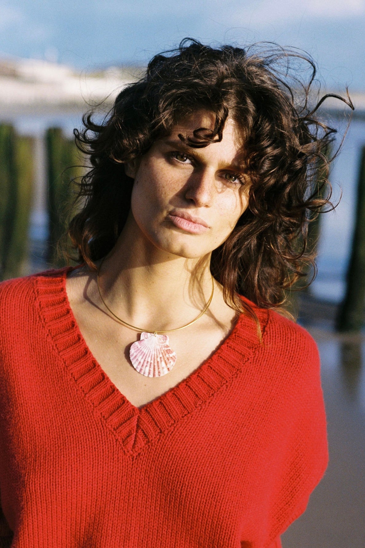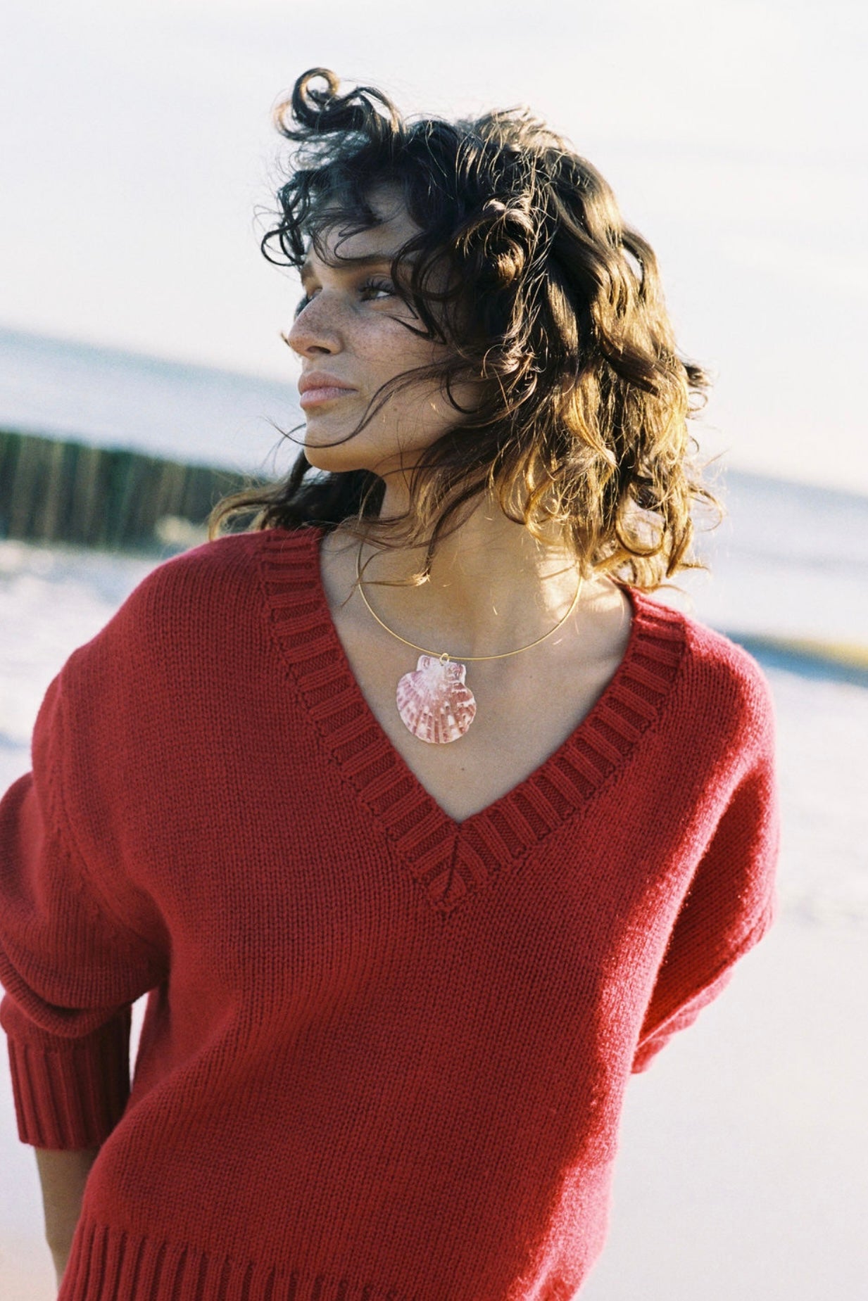 This beautiful 17" collar necklace holds a gorgeous oversized pink and white striped seashell <3
