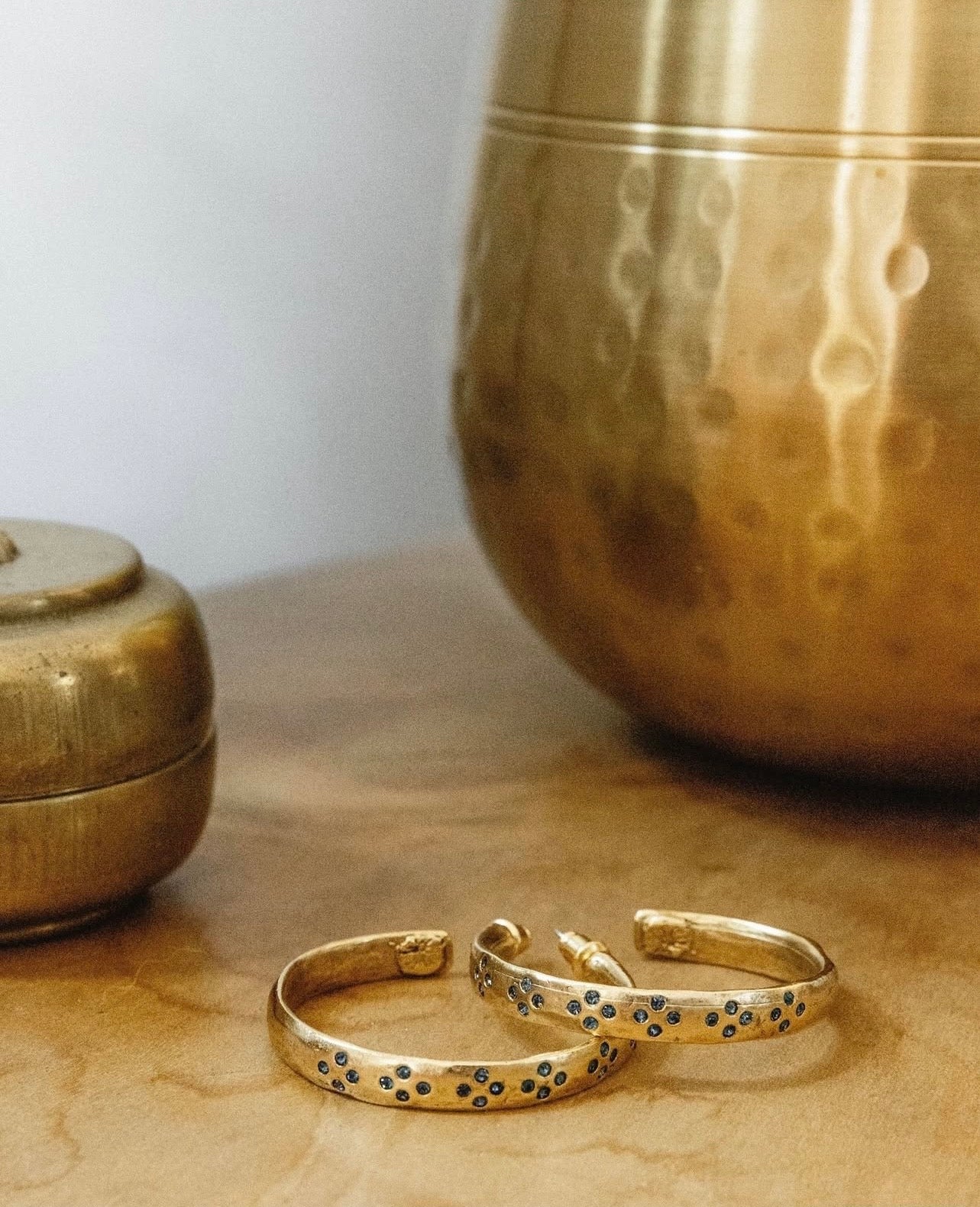 These hammered 12k antiqued gold plated pewter hoops have stainless steel post and are dotted with hand-placed navy blue rhinestone gems. These hoops are way more than they appear online. They twinkle in the light and accentuate the sparkle in your eyes. A must have!